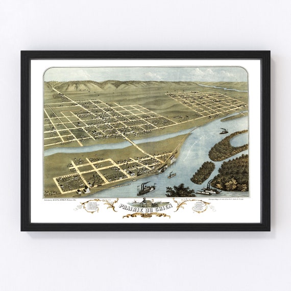 Old Map Of Prairie Du Chien Wisconsin Art Vintage Print Framed Canvas Bird S Eye View Portrait History